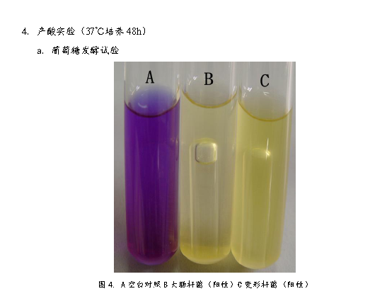 3、 將普通變形桿菌接種到生理生化檢測(cè)培養(yǎng)基中,37℃培養(yǎng)48h。檢測(cè)菌種生理生化特性。