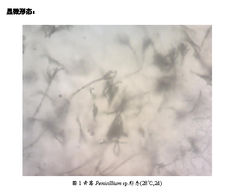 青霉采用玻璃紙法在PDA培養(yǎng)基上接種,28℃培養(yǎng)。第2天即可看到青霉產(chǎn)孢,產(chǎn)孢量較大。青霉菌屬多細胞,營養(yǎng)菌絲體無色或淡色。菌絲有橫隔,分生孢子梗亦有橫隔,光滑或粗糙。基部無足細胞,頂端不形成膨大的頂囊,其分生孢子梗經(jīng)過多次分枝,產(chǎn)生幾輪對稱或不對稱的小梗,形如掃帚,稱為帚狀體。分生孢子球形,生長時呈藍綠色。培養(yǎng)一周后,可看到明顯的孢子脫落。連續(xù)觀察2周,仍然可以觀察到青霉的產(chǎn)孢結(jié)構(gòu),分生孢子易觀察。