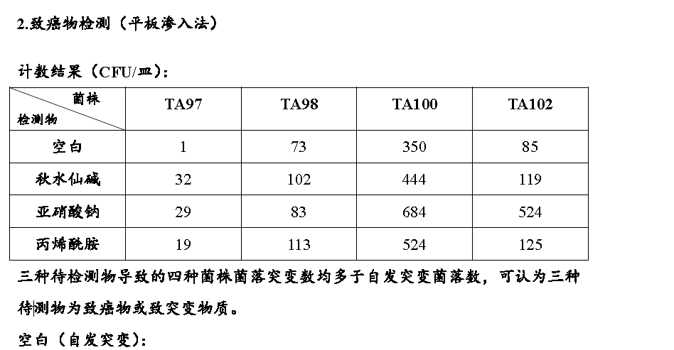TA100:組氨酸缺陷,結晶紫敏感,紫外線敏感,氨芐青霉素不敏感,四環素敏感;