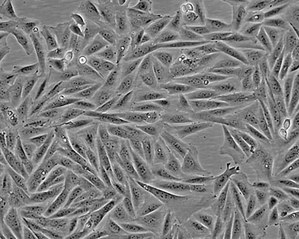 如果細(xì)胞密度達(dá)80%-90%,即可進(jìn)行傳代培養(yǎng)。1. 棄去培養(yǎng)上清,用不含鈣、鎂離子的PBS潤洗細(xì)胞1-2次。2. 加2ml消化液(0.25%Trypsin-0.53mM EDTA)于培養(yǎng)瓶中,置于37℃培養(yǎng)箱中消化1-2分鐘,然后在顯微鏡下觀察細(xì)胞消化情況,若細(xì)胞大部分變圓并脫落,迅速拿回操作臺(tái),輕敲幾下培養(yǎng)瓶后加少量培養(yǎng)基終止消化。3. 按6-8ml/瓶補(bǔ)加培養(yǎng)基,輕輕打勻后吸出,在1000RPM條件下離心4分鐘,棄去上清液,補(bǔ)加1-2mL培養(yǎng)液后吹勻。4. 將細(xì)胞懸液按1:2到1:5的比例分到新的含8ml培養(yǎng)基的新皿中或者瓶中 |