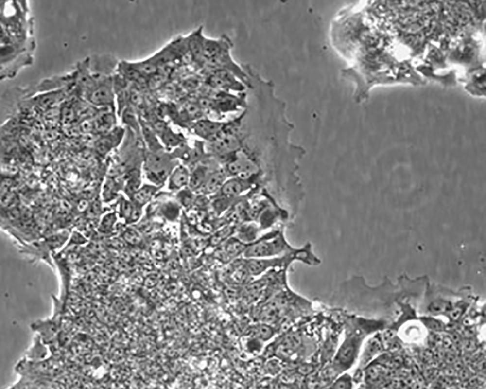 如果細(xì)胞密度達(dá)80%-90%,即可進(jìn)行傳代培養(yǎng)。1. 棄去培養(yǎng)上清,用不含鈣、鎂離子的PBS潤洗細(xì)胞1-2次。2. 加2ml消化液(0.25%Trypsin-0.53mM EDTA)于培養(yǎng)瓶中,置于37℃培養(yǎng)箱中消化1-2分鐘,然后在顯微鏡下觀察細(xì)胞消化情況,若細(xì)胞大部分變圓并脫落,迅速拿回操作臺(tái),輕敲幾下培養(yǎng)瓶后加少量培養(yǎng)基終止消化。3. 按6-8ml/瓶補(bǔ)加培養(yǎng)基,輕輕打勻后吸出,在1000RPM條件下離心4分鐘,棄去上清液,補(bǔ)加1-2mL培養(yǎng)液后吹勻。4. 將細(xì)胞懸液按1:2到1:5的比例分到新的含8ml培養(yǎng)基的新皿中或者瓶中 |