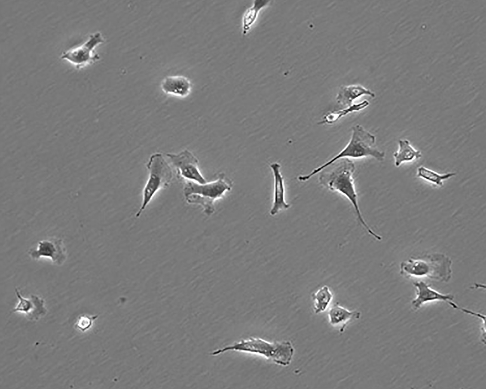 如果細胞密度達80%-90%,即可進行傳代培養。1. 棄去培養上清,用不含鈣、鎂離子的PBS潤洗細胞1-2次。2. 加2ml消化液(0.25%Trypsin-0.53mM EDTA)于培養瓶中,置于37℃培養箱中消化1-2分鐘,然后在顯微鏡下觀察細胞消化情況,若細胞大部分變圓并脫落,迅速拿回操作臺,輕敲幾下培養瓶后加少量培養基終止消化。3. 按6-8ml/瓶補加培養基,輕輕打勻后吸出,在1000RPM條件下離心4分鐘,棄去上清液,補加1-2mL培養液后吹勻。4. 將細胞懸液按1:2到1:5的比例分到新的含8ml培養基的新皿中或者瓶中 |
