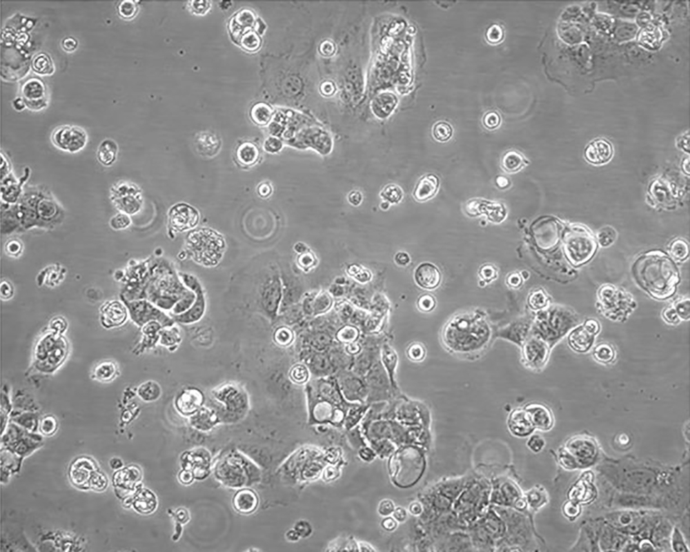 如果細胞密度達80%-90%,即可進行傳代培養。1. 棄去培養上清,用不含鈣、鎂離子的PBS潤洗細胞1-2次。2. 加2ml消化液(0.25%Trypsin-0.53mM EDTA)于培養瓶中,置于37℃培養箱中消化1-2分鐘,然后在顯微鏡下觀察細胞消化情況,若細胞大部分變圓并脫落,迅速拿回操作臺,輕敲幾下培養瓶后加少量培養基終止消化。3. 按6-8ml/瓶補加培養基,輕輕打勻后吸出,在1000RPM條件下離心4分鐘,棄去上清液,補加1-2mL培養液后吹勻。4. 將細胞懸液按1:2到1:5的比例分到新的含8ml培養基的新皿中或者瓶中 |